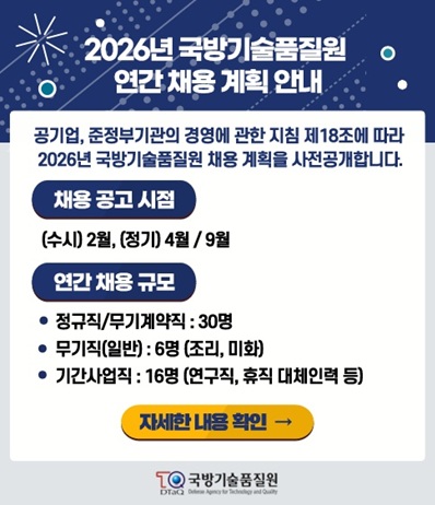 국방기술품질원의모든 소식과 이야기를미디어룸에서 만나보세요!