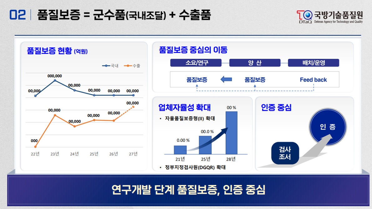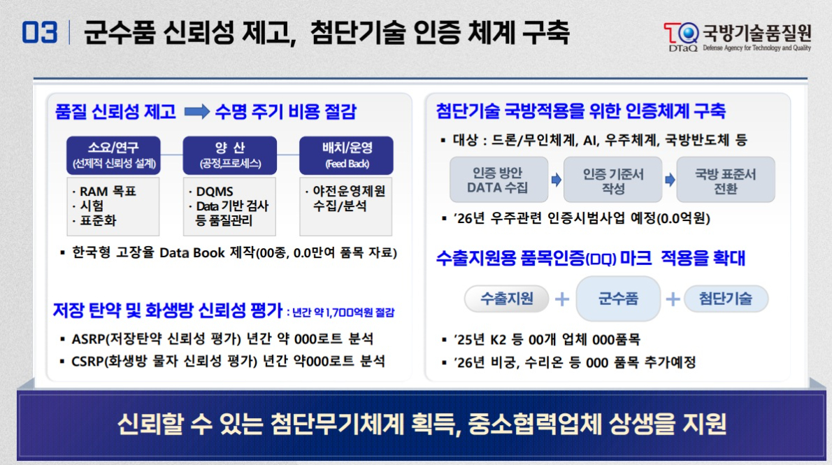 '2026년 국방부 외청 및 공공기관 업무보고'(2026.1.14.) 에서 발표된 국방기술품질원 업무보고 자료입니다.