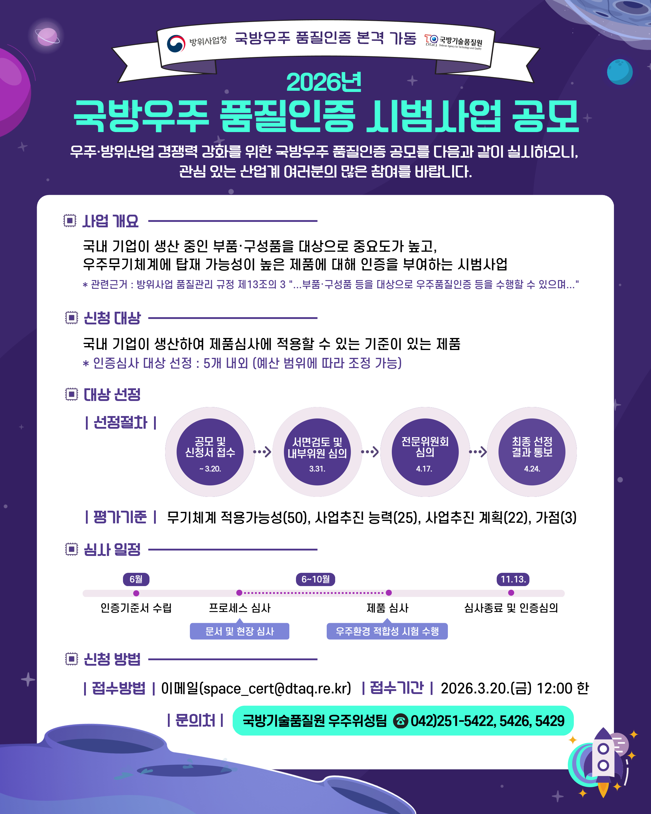 - 접수방법 : 이메일(space_cert@dtaq.re.kr) 접수 및 유선확인