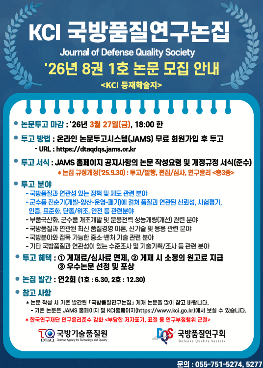 '26년 국방품질연구논집(KCI 등재학술지) 8권 1호 논문 모집을